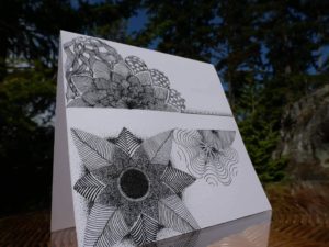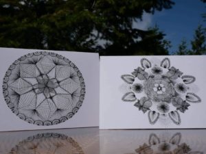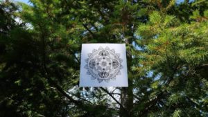 Helia began an Instagram account, where she is able to scan photos of her hard-drawn pieces to share them on her page. She hopes to also begin an Etsy store in the near future where she can sell her pieces. Her mandalas make great framed art pieces, but she hopes to also have cards available and perhaps printed onto textiles as well!